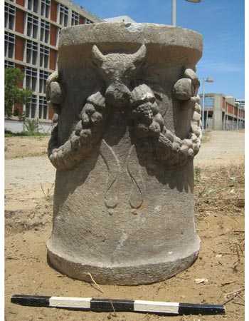 According to Dr. Yigal Israel, Ashkelon District Archaeologist of the Israel Antiquities Authority, “The discovery further corroborates the assertion that we are dealing with a pagan cemetery. It is an impressive find that has survived 2,000 years. The altar is c. 60 centimeters tall and it is decorated with bulls’ heads, from which dangle laurels wreaths. There is a strap in the middle of each floral wreath and bull’s head. The laurel wreaths are decorated with grape clusters and leaves. This kind of altar is known as an “incense altar”. Such altars usually stood in Roman temples and visitors to the temple used to burn incense in them, particularly myrrh and frankincense, while praying to their idols. We can still see the burnt marks on the altar that remain from the fire. The altar was probably donated by one of the families who brought it to the cemetery from the city of Ashkelon”.
