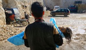 Dozens of people, including children, died – some writhing, choking, gasping or foaming at the mouth – after breathing in poison that possibly contained a nerve agent or other banned chemicals, according to witnesses, doctors and rescue workers. They said the toxic substance spread after warplanes dropped bombs in the early morning hours. Some rescue workers grew ill and collapsed from proximity to the dead.