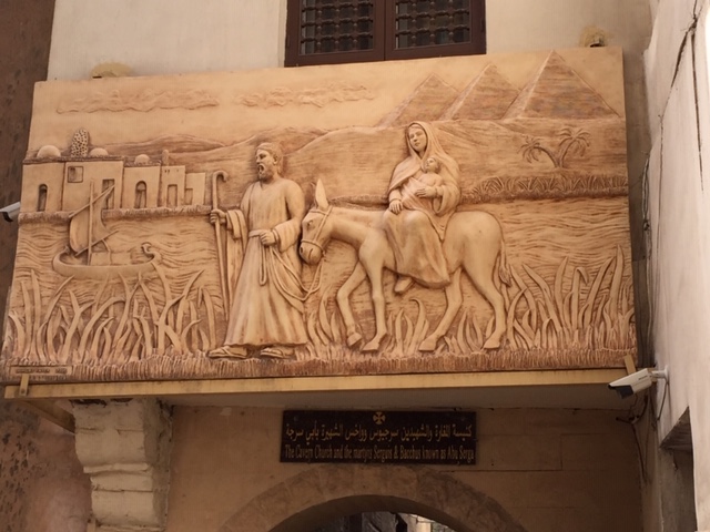 While we were in Egypt, my wife and I visited a Christian Church that, according to local tradition, was the place where Joseph, Mary, and Jesus stayed when they traveled to Egypt to escape from the hands of King Herod. The mural below is inside the church to indicate that this was the place where the holy family stayed.