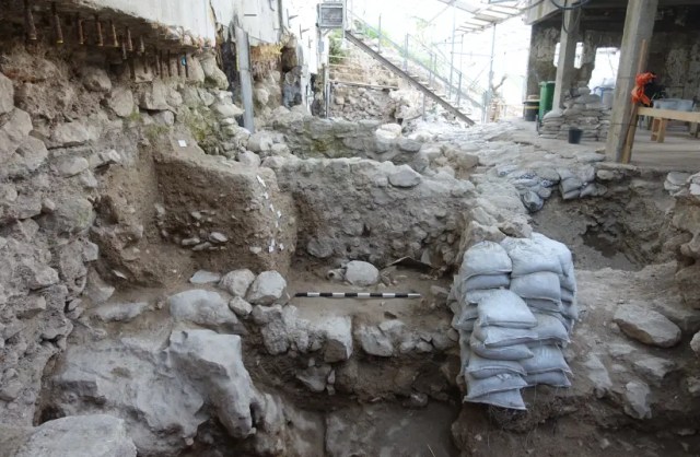 In an upcoming research paper, the archaeologists chart, for example, that in one particular 8th century BCE structure the destruction layer did not show signs of fire, yet other factors suggested the building had been damaged in a traumatic event, apparently an earthquake. “This was most notable on the earliest floor of the southernmost room,” they write. “In this room, a row of smashed vessels was uncovered along its northern wall, above which fallen stones had been found. It appears that these stones were the upper part of the walls of the room, which had collapsed, destroying the vessels which had been set along the wall.”
