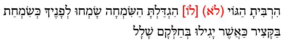 The King James translates the text as: Thou hast not increased the joy. This is the ketiv or what is written in the text. However, the Masoretes said that this is not the best and original reading. Thus, they put a note on the margin of the text to indicate that instead of reading לא, lo’, the text should read לו, lô, “Thou hast increased their joy.” This is the qere, what should be read.