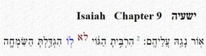 The reason I selected Isaiah 9:3 (Hebrew 9:2) is because the versions differ when translating this verse into English. This is how Isaiah 9:3 (Hebrew 9:2) read in the Hebrew Bible: